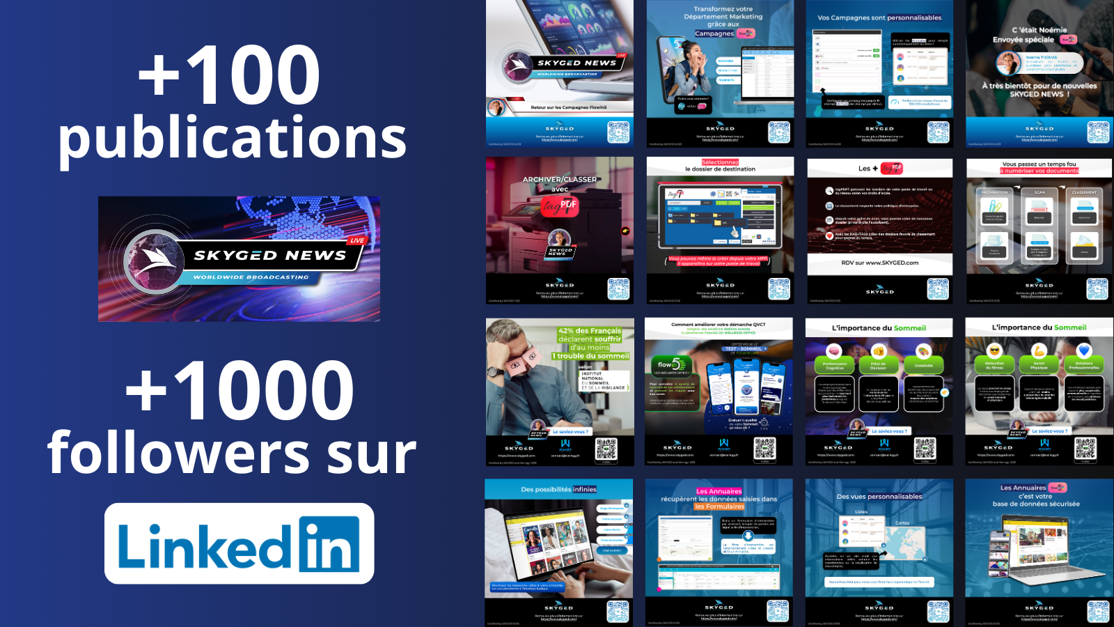 Chez SKYGED, j’ai occupé un poste hybride mêlant graphisme, direction artistique et marketing. Pendant 3 ans, j’y ai conçu des identités visuelles, du contenu pour LinkedIn, des interfaces web et mobiles ainsi que divers supports print. Un rôle complet qui m’a permis de lier créativité, stratégie et cohérence de marque.